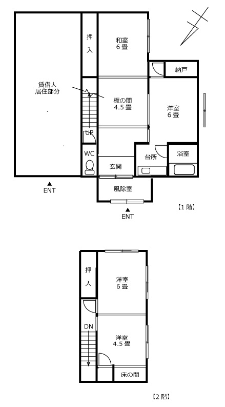 4DK / 土地195.47㎡ / 建物110.12㎡ / 築58年 / 木造2階建